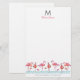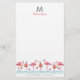 Monograma de papelaria moderno com ilustração de flamingos pintados à mão na ilustração do mar