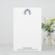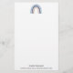 Papel de papelaria com um arco-íris fofo e caprichoso. Aquarelas azuis e de pêssego.