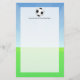 Esfera de futebol do tipo hexágono preto e branco num campo verde de grama num dia ensolarado com céu azul, e raios de luz ao fundo. Que tempo bom para jogar fora do jogo de futebol de excelente ou do campo de futebol.
