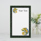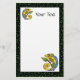 Personalize este papel de carta com qualquer texto desejado. Imagem é minha pintura original. Este lagarto abstrato colorido está pendurado num galho com uma folha grande no final. Ele é feito em verdes, azuis, amarelos e laranjas. A borda é preta com pontos verdes brilhantes. Veja minha loja Art by MAR para combinar produtos com este design.