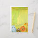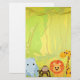 Uma cena da selva do divertimento com árvores, videiras, e um rio como o fundo e um elefante, um macaco, um leão e um girafa olhando sobre. Esboçado em um brilho como o quadro. Excelente para um chá de fraldas do menino ou da menina.