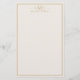 Create your own personalized stationery paper with elegant three letter monogram initials and name with simple border design in ivory and gold color.