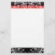 Uma beira vermelha e preta com redemoinhos brancos projeta fazer seu papel de carta elegante.