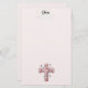 Papelaria de cruz e rosa. Nome personalizável e cor de fundo.