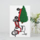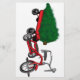 Entrega da árvore de Natal em um pequeno vagão vermelho, estilo triciclo. Um presente retrô muito bonito.