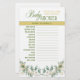 Este jogo de chá de fraldas mede 5,5" x 8,5", é fácil de escrever e é uma adição elegante e divertida ao seu evento. Ele contém uma palavra riscada - pronta para ir - embora seja bem-vinda para criar suas próprias palavras se você escolher, e mantém um design aquoso de folhas de eucalipto (verde e dourado) com letras em negrito e a palavra chá de fraldas. Outro texto é fácil de atualizar.