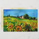 Paisagem da Toscana, cor, vibrante e expressiva beleza da flora e campos de Verão italianos em laranja amarelo vivo, verde, castanho, cor azul, lindas flores, ciprestes e oliveiras, antiga casa de fazenda rustica sob o céu azul.Pintura acrílica em canvas.
