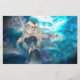 Céu azul etéreo - Lua cheio brilhando através das nuvens - Bela deusa Lua loira, Sky Siren apontando para seu belo carregando de pomba branca um rosa solteiro