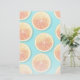 Um padrão de fatias de laranja frescas e suculentas em tons profundos de laranja tangerina e laranja vermelha, com textura aquosa que lhe dá aquele aspecto recém cortado. Eles são colocados sobre um fundo azul brilhante para um visual brilhante e de verão.