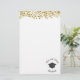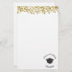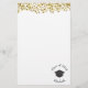 Papel de carta projetado com falso brilho de confete de ouro. Ilustrado com um boné de formatura preto, cercado por um texto circular que diz o nome e a classe do formando 20xx. Elegante e chic.