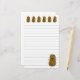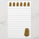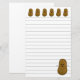 Uma adorável batata marrom de desenho animado com um rosto feliz simpático fica no canto inferior direito e ao longo da parte superior do papel há uma linha das mesmas batatas engraçadas.