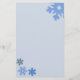 Papel de carta inspirado no inverno que apresenta um grande floco de neve azul no canto superior direito do papel e um trio de flocos de neve no canto inferior esquerdo.