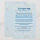 Papel de carta de Natal com modelo para digitar uma mensagem. Azul claro com texto azul escuro e design de floco de neve, este artigo serve para manter familiares e amigos atualizados com a vida familiar. Algumas pessoas têm a tradição de enviar tal carta com cartões de Natal. Este documento tem um título, onde nome e ano podem aparecer, com um parágrafo de texto para a mensagem. Ou apague a modelo e escreva a sua carta manualmente. O reverso também é azul com flocos de neve.