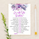 Esta é uma Preferencialmente? Jogo do chá de panela. Ela Preferencialmente? - A noiva preencherá a sua própria ficha de resposta pessoal. Os hóspedes farão circular a opção correta, dado o seu próprio conhecimento pessoal sobre a noiva. Quem tem as respostas mais corretas, ganha! O jogo consiste em flores florais roxas, jogos de chá de panela divertidos