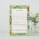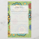 Papel de papelaria bonito personalizado com flores azuis, amarelas e guinchadas à mão sobre fundo verde-claro. Texto, fonte, tamanho da fonte, cor e posicionamento são completamente personalizáveis.