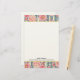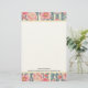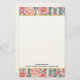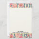 Papel de papelaria com um belo padrão, com flores bonito cor-de-rosa, sobre um padrão listrado composto por listras azuis e creme. Um quadro retangular com uma borda falsa de folha de ouro colocada sobre cima para que você escreva dentro. Personalize com um nome e endereço.
