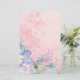 Uma ilustração aquosa suave e delicada de um arranjo floral com flores silvestres bonito, cor-de-rosa e azuis, com um pergaminho de pêssego, que dá a este design um talho de colheita. As flores azuis decoram a borda do design enquanto as flores cor-de-rosa se transformam em fundo para um efeito delicado e macio.