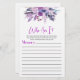 Este é um Pensamento Floral Roxo Quem sou eu? Jogo do chá de panela. Quem Sou Eu? - Os convidados anotarão a memória que têm com a Noiva a Ser. As memórias serão lidas em voz alta e a Noiva a Ser vai adivinhar quem as escreveu. Quando ela não acha que sua memória está correta, você ganha! Roxo Floral Flowers jogos de chá de panela, noiva e adivinhação de noiva, noiva a ser, jogos de chá de panela, atividades de chá de panela