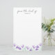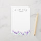 Bonito papel de nota com uma bela borda inferior de flores lilás aquáticas com folhas verdes, com "da mesa de" no estilo preto de caligrafia moderna, e personalizado com seu nome. Por que não um comprar como presente para sua mãe, amigo ou qualquer outro viciado em papelaria?