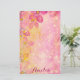 Design de papel de papelaria floral romântico personalizado, com flores rosa estilizadas, luzes de boque, faíscas e pinturas amarelas. O texto é totalmente personalizável.