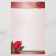 Papel de carta bonito limitado na parte superior e na parte inferior com vermelho marmoreado. As flores do vermelho rico enfeitam o inferior esquerdo e os cantos superiores direito que moldam uma área cor-de-rosa macia textured da escrita separada com as bandas verdes finas. Trabalhos de arte e design por Karlajkitty. Contacte-me para partes de harmonização em info@karlajkitty.com.