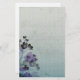 Artigos de papelaria bonito com as flores roxas no fundo azul do inclinação