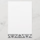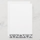 Papel de carta com um padrão elegante de margaridas e folhas de safra com rolhas a preto sobre branco.