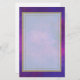 Papel colorido de papel de carta com fundo de cor d'água roxo e rosa brilhante. Essas aquarelas vibrantes se misturam e se misturam criando um design simples, minimalista, vibrante e dinâmico. Em cima está uma camada branca semitransparente cercada por uma borda dupla em ouro.