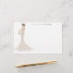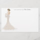 Cartões de nota personalizados com noiva ilustrada. Muitos buquês de casamento, flores, penteados e tons de pele para escolher. A parte traseira da placa de anotação apresenta um padrão de local.