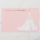 Cartões personalizados com noiva ilustrada. Muitos buquês de casamento, flores, penteados e tons de pele para escolher. A parte traseira da nota apresenta um padrão floral.