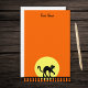 Esta papelaria é laranja brilhante com um gato preto de Halloween caminhando sobre uma cerca preta com uma lua amarela cheio atrás dele. Personalize seu nome no topo com o modelo.