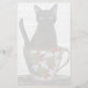 Gato Negro em Teacup por FabFunky. Tem um gato sentado em uma linda equipe floral. | 191389D