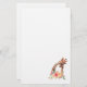 Papel de papelaria com um desenho fofo em aquarelas de uma girafa-mãe e bebê. A girafa-mãe está descansando a cabeça sobre a girafa do bebê, amorosa e adorável. Bonito buquê rosa, amarelo, verde, de flor de aquarela colocado debaixo deste par de queridos.