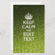 Seu festivo personalizado Mantenha Calma dizendo em uma bela decoração de na moda verde limão. Humorístico ou caprichoso experimente suas palavras criativas em duas linhas editáveis de texto. Lembre-se de usar letras CAPITAL para obter melhores resultados. Designs de bordados estão disponíveis em uma ampla seleção de opções populares de cor. Use o link "Perguntar a este Designer" para entrar em contato conosco com suas solicitações especiais de design ou para obter assistência com as necessidades do seu projeto de personalização.