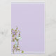 Um papel de papelaria de lavanda bonito decorado com flores gloriosas matinais pintadas em cor d'água roxa e azul.
