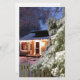 High Sierra Holiday. Foto original de uma bela casa coberta de neve, cercada por uma cerca branca de piquete e um pinheiro solitário. Localizado no pinheiro solitário, CA.