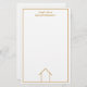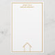 Esta papelaria de corretor moderno é simples e elegante com o seu nome e informações da empresa. Apresenta um desenho de linha dourada e branca minimalista e sofisticado de uma casa. Use esta papelaria contemporânea para correspondência de imóveis para clientes e outros agentes imobiliários.