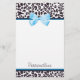 Azul na moda e papel de carta do impressão do leopardo da ameixa com um arco bonito da fita azul envolvido como um presente. Personalize adicionando seu nome. Aperfeiçoe o presente para uma menina feminino adolescente!
