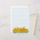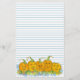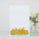 Um papel de papelaria revestido de Halloween, divertido, decorado com cinco abóboras de jack-o-lanterno, cobertas de aranhas e teias de sabão em tons de água azul e roxa. Diversão para cumprimentos de Halloween, anotações e listas!