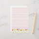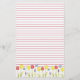 Um bonito papel de papelaria vermelho para cartas escrevendo com um jardim de flores de tulipas desenhado a lápis colorido.