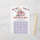 Este é um carnaval chamado Jogo do Chá de fraldas do Jogo do Bingo. *Bingo Chá de fraldas - Os convidados irão preencher os vazios com os presentes que eles pensam que a mãe que será receberá. Quando a mãe for abrir um presente que é um dos seus palpites, eles irão marcá-lo com um X. Quando eles tiverem 5 seguidos, eles irão Bingo! O primeiro a ter 5 em seguida, ganha!