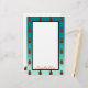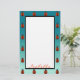 Este design apresenta um padrão de joias em um plano de fundo azul/verde.