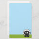 Cartoons simples e adoráveis. O carneiro bonito está mastigando uma flor amarela.