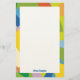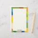 Colorful intersecting shapes create a lively abstract border for this customizable stationary.