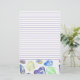 Um papel de papelão revestido de diversão, decorado com um padrão de borda de conchas pintadas manualmente em diferentes tons de aquarela, com azul pastel, verde, roxo e amarelo com fundo de mancha. presente de excelente para um amigo que coleciona conchas!