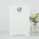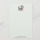 Papelaria com trio de borboletas fluindo entre algumas flores bonito. Esquema de cor rosa azul e verde.