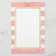 Papel de carta com um padrão elegante. Apresentando listras cor-de-rosa-pincel e escamas de dourado falso, esparramadas à volta. Um quadrado retangular com uma borda falsa de folha de ouro colocada sobre cima, para escrever dentro.