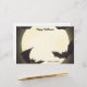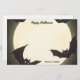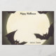 Uma lua de cheio brilha intensamente no céu noturno, cercada por morcegos voadores. A design apresenta um espaço aberto e vazio no meio, ideal para texto ou elementos adicionais, enquadrado pela atmosfera sombria, Halloween, da lua e dos morcegos.
