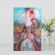 Cores d'água originais, pintura acrílica com folha de ouro e cores iridescentes na canvas.Arte contemporânea vibrante, colorida e única em cores brancas brilhantes, vermelhas, cor-de-rosa, azul-lacrimogêneo .Belo personagem loiro sofisticado, tecidos brilhantes de um figurino barroco com rosa vermelha.