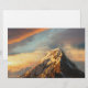Este design apresenta uma imagem impressionante de um pico de montanha com capa de neve. A luz está a passar do sol de pôr e há uma tonalidade de ouro para as nuvens no céu, que pode ser vista como um símbolo de esperança.